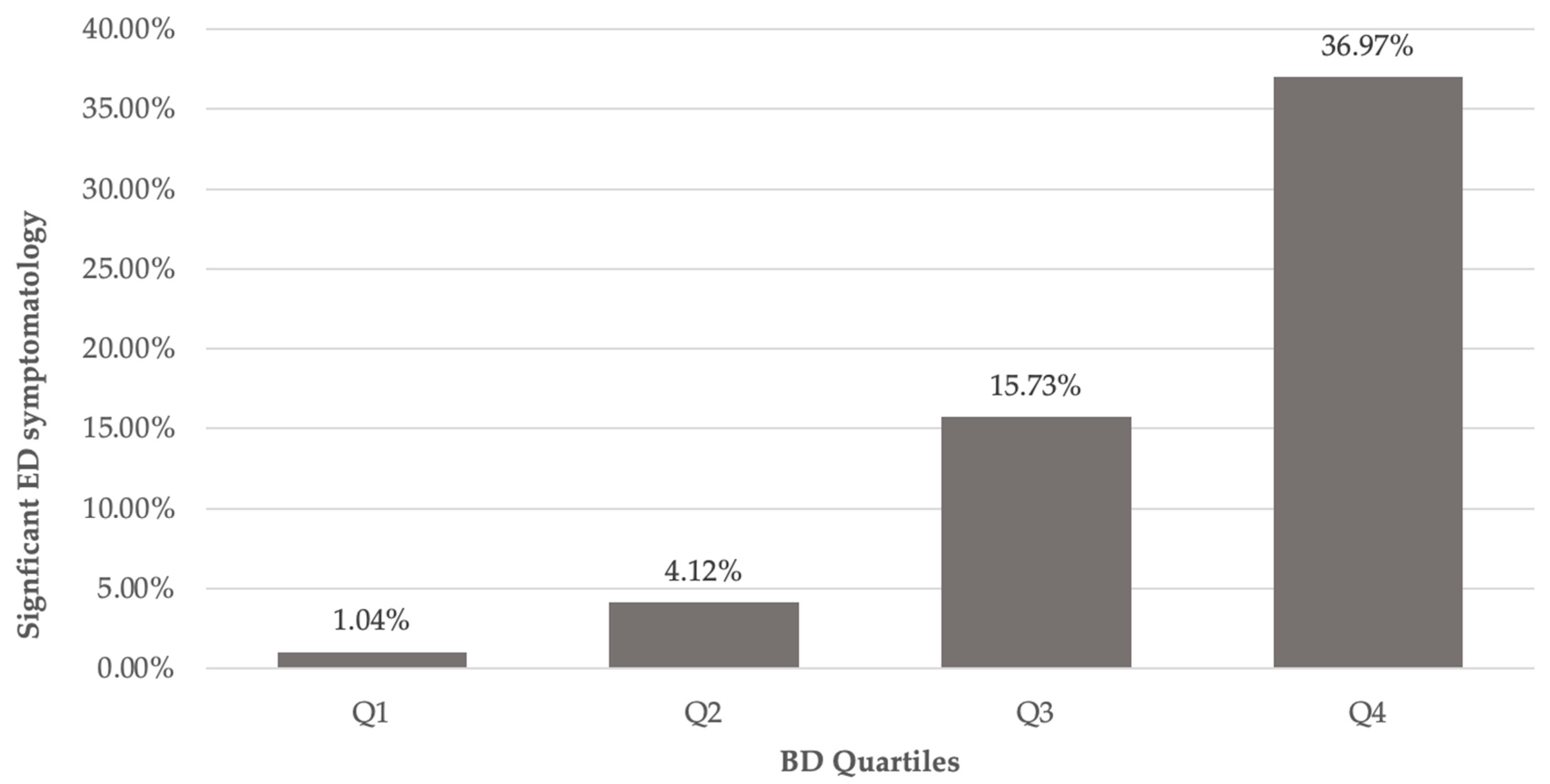 Table 2. Distribution of significant ED symptomatology and crude associations with participant’s characteristics.
