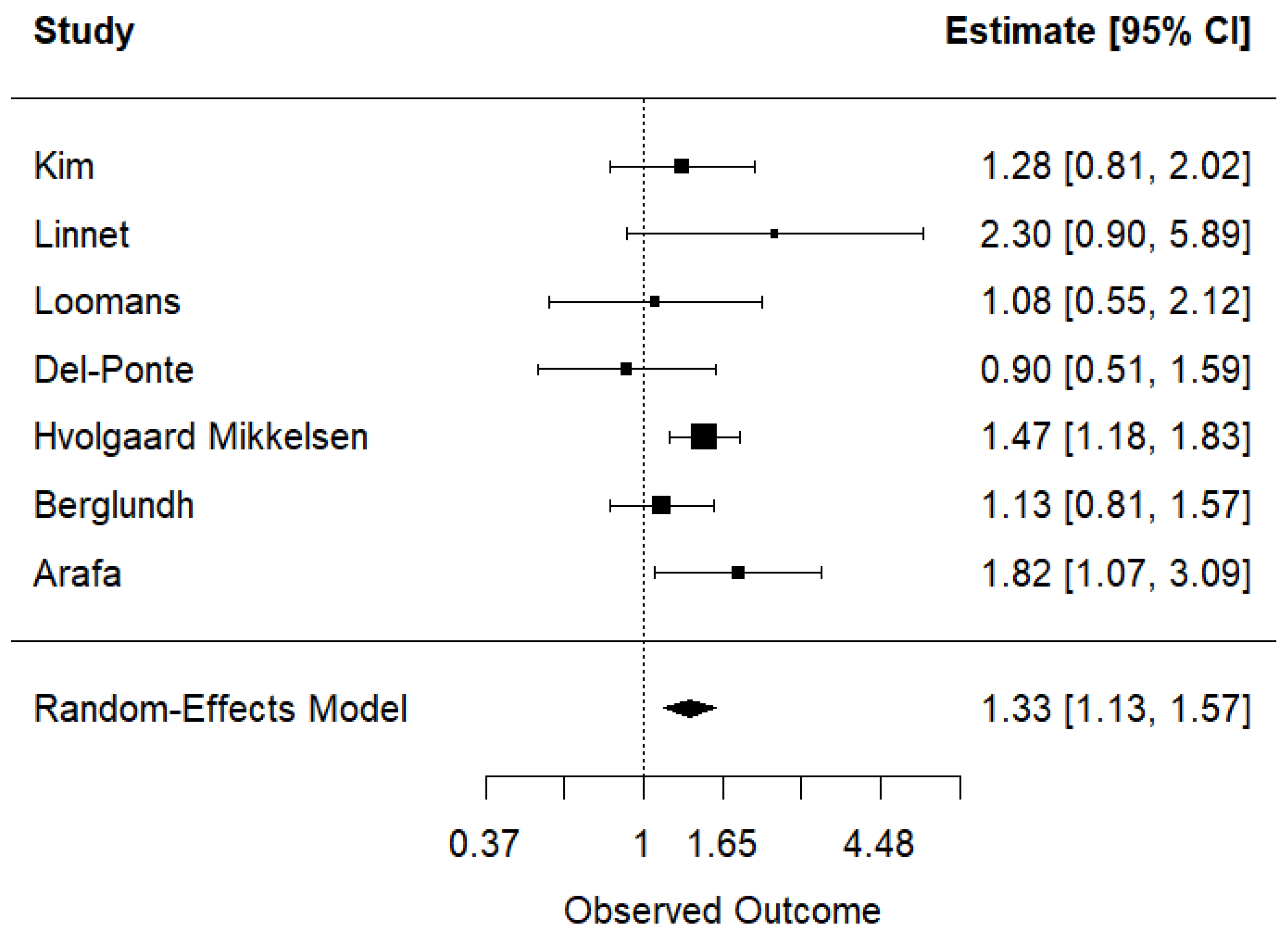 | Hvolgaard Mikkelsen et al. [22] | 1.25 (1.01, 1.55) | 7.04% |