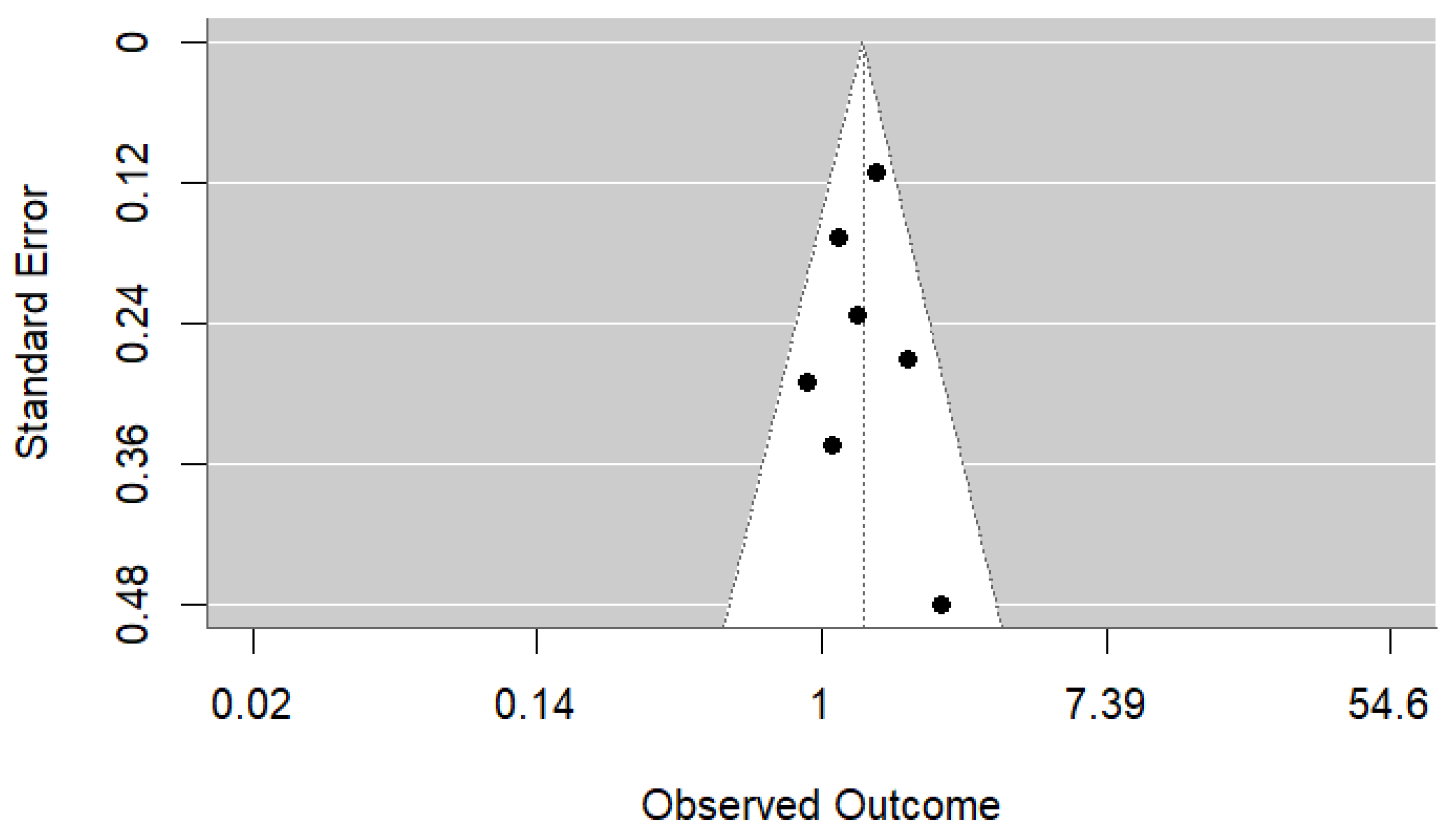 - Egger, M.; Davey Smith, G.; Schneider, M.; Minder, C. Bias in meta-analysis detected by a simple, graphical test. BMJ 1997, 315, 629–634. [Google Scholar] [CrossRef]