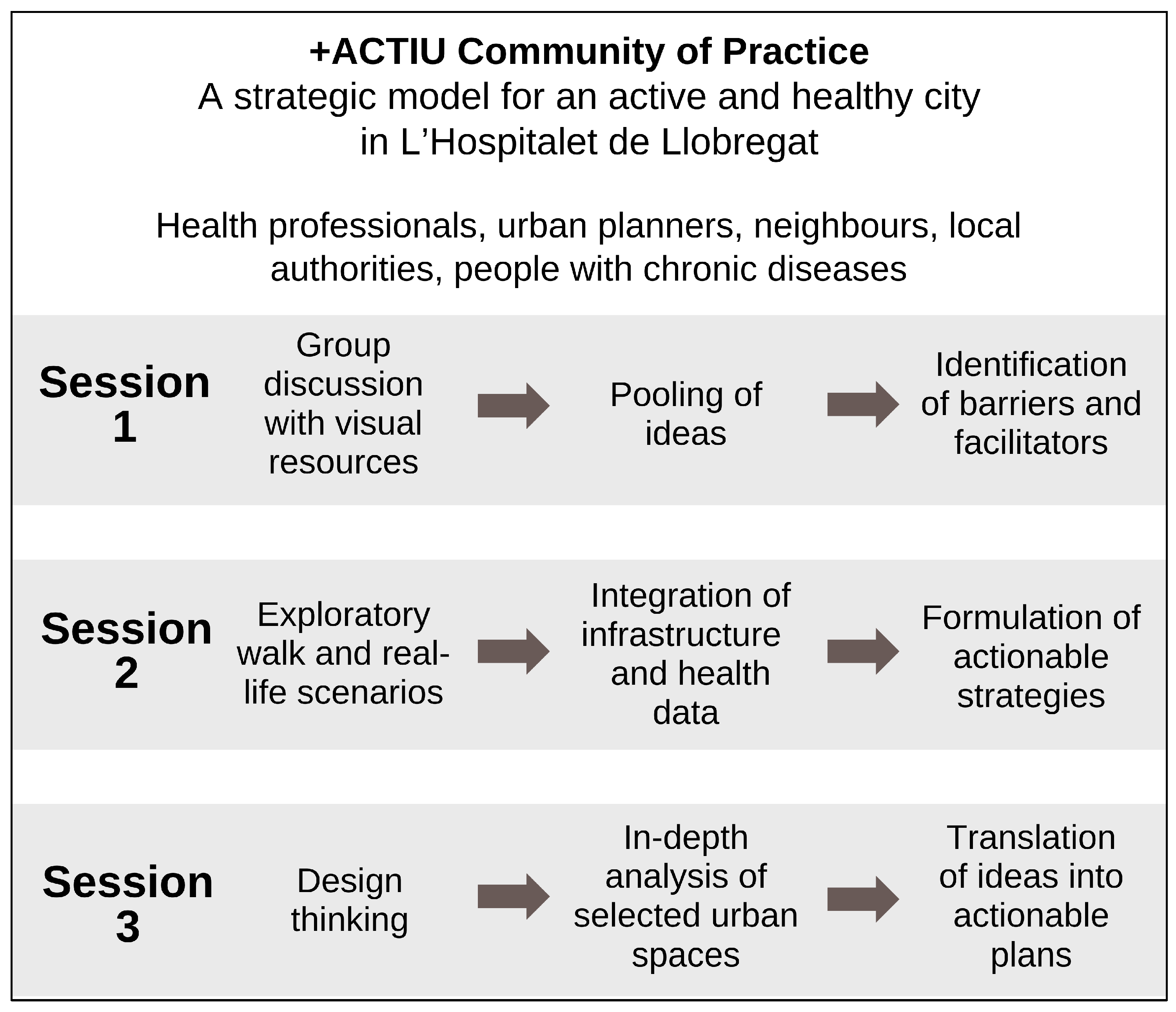 APA StyleGil-Lespinard, M., Canet-Vélez, O., Ollé-Gonzalez, J., Casas-Camí, A., García Albertos, C., Rofín Serrà, M., Vilaró Casamitjana, J., & Jakszyn, P. (2025). Enhancing Urban Health Through a Community of Practice to Promote Active Lifestyle in a Population with Chronic Diseases: The +ACTIU Project. International Journal of Environmental Research and Public Health, 22(12), 1833. https://doi.org/10.3390/ijerph22121833
