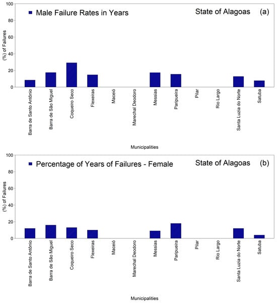 From a socioeconomic perspective, Alagoas consistently ranks among the most socially vulnerable states in Brazil. It presents the lowest Municipal Human Development Index (MHDI) nationwide, with a mean value of 0.684 [29], which remains below the national average (0.760). Within the 1st HRA, municipalities such as Maceió, Rio Largo, Marechal Deodoro, Pilar, Paripueira, and Satuba exhibit moderate human development levels (MHDI ≥ 0.600), while Flexeiras, Barra de São Miguel, Messias, Coqueiro Seco, and Santa Luzia do Norte record lower values (MHDI ≤ 0.600). These marked inequalities underscore persistent structural challenges—such as income concentration, housing deficits, and limited access to public services—that are recognized determinants of TB incidence and treatment outcomes [2,4,16].