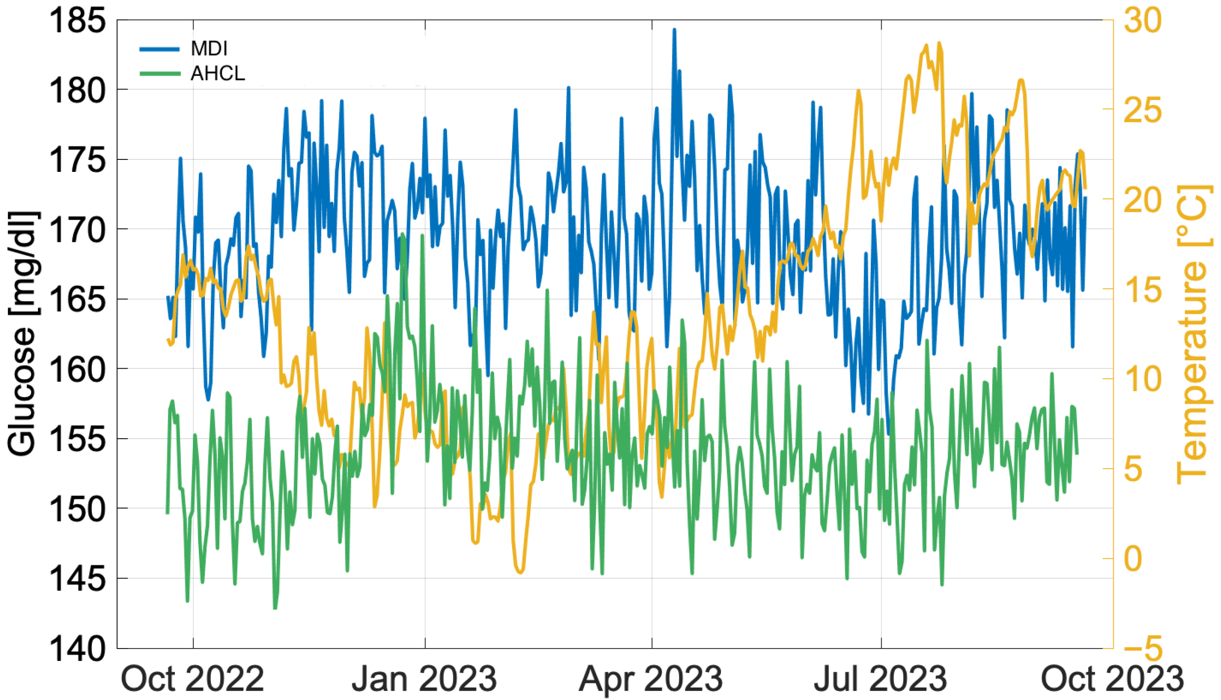 - Lanzinger, S.; Biester, T.; Siegel, E.; Schneider, A.; Schöttler, H.; Placzek, K.; Klinkert, C.; Heidtmann, B.; Ziegler, J.; Holl, R. The impact of daily mean air temperature on the proportion of time in hypoglycemia in 2,582 children and adolescents with type 1 diabetes—Is this association clinically relevant? Environ. Res. 2023, 233, 116488. [Google Scholar] [CrossRef]