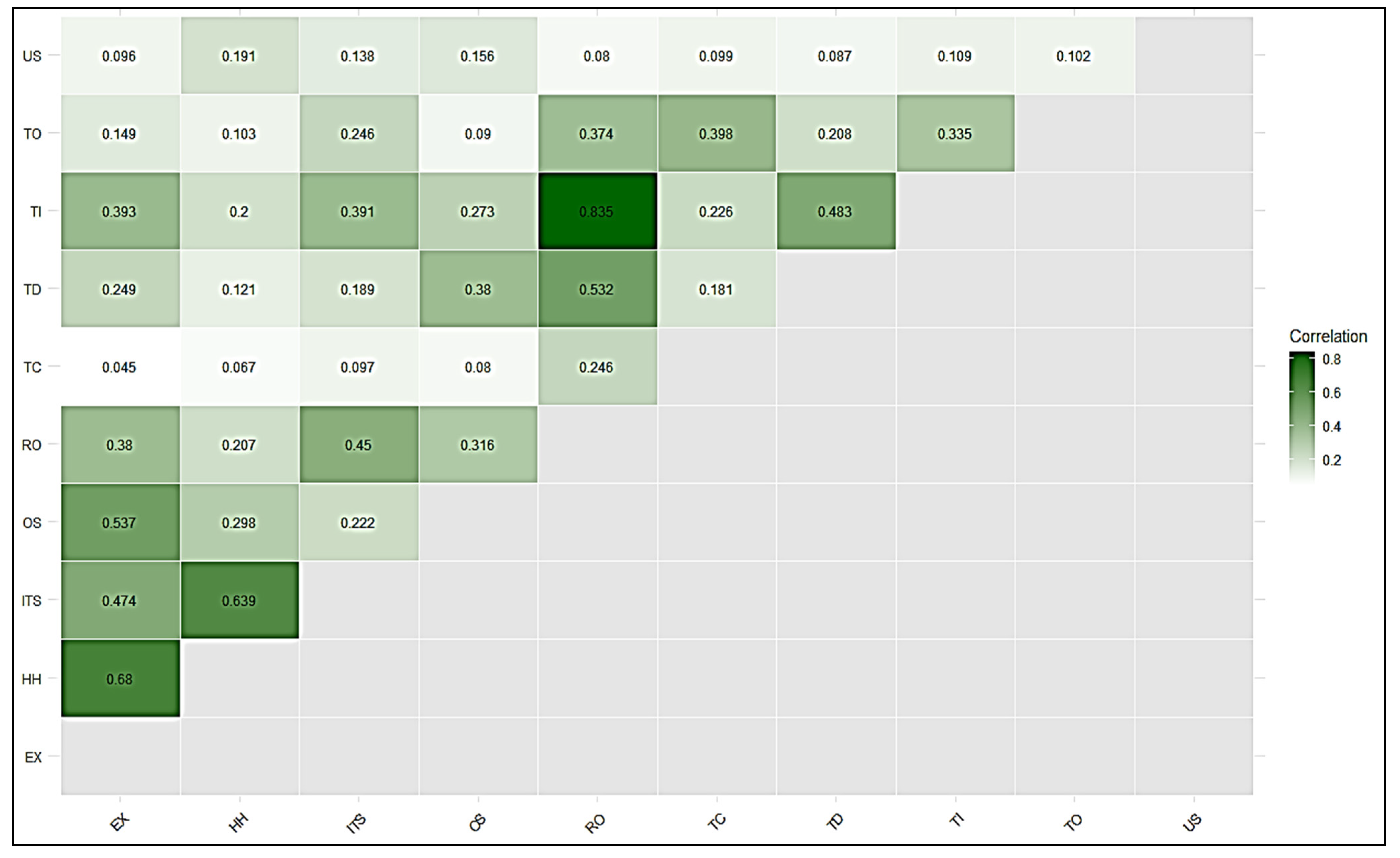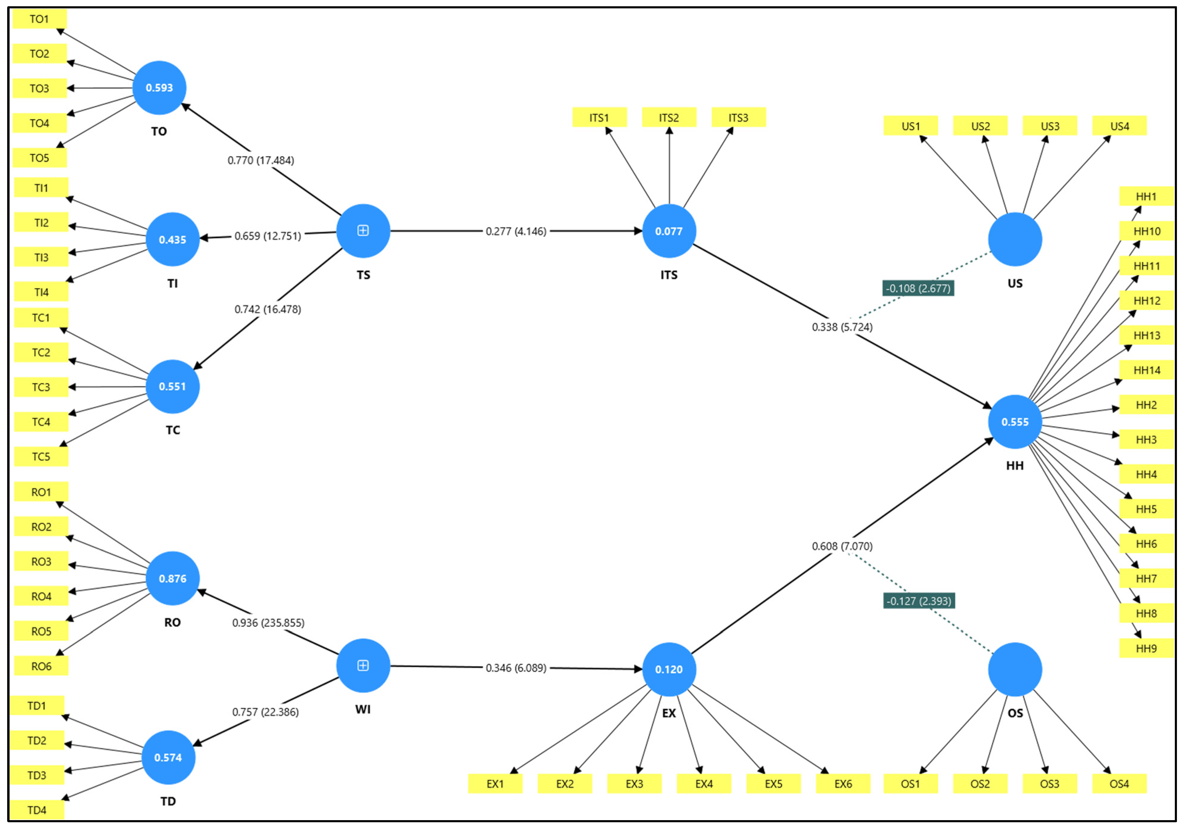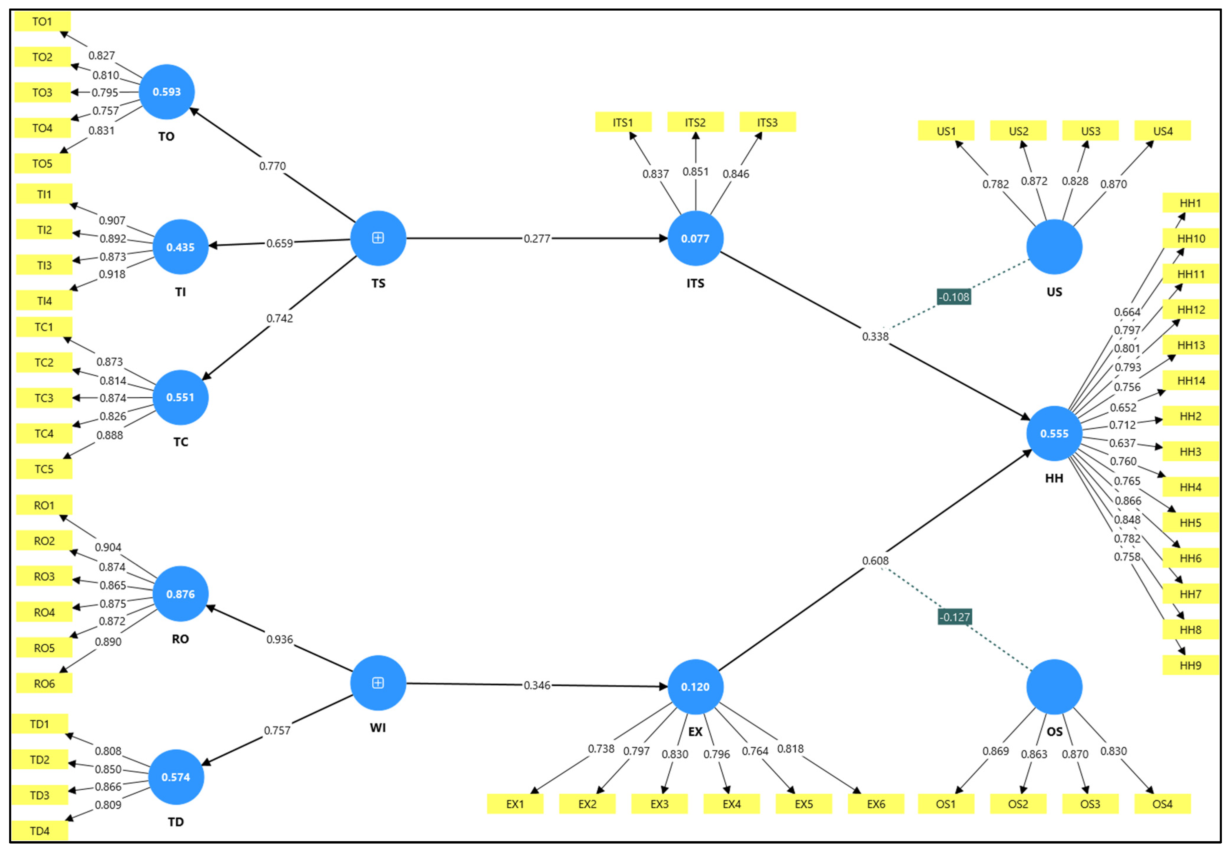| H8 | US × ITS ≥ HH | −0.108 | 0.04 | 2.677 | 0.004 | −0.172 | −0.036 | Supported |