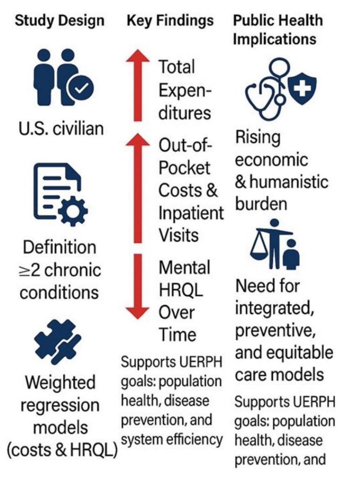 - This study provides longitudinal evidence of persistent disparities in healthcare expenditures and quality of life among multimorbid individuals.
