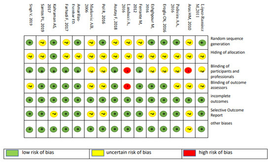 Assessing the risk of bias in the studies, some studies were evaluated as uncertain in randomization and blinding, as they did not describe and ensure how this was done, even stating that both were performed. It is worth emphasizing the importance of better description of protocol and design in clinical trials, so that, in the face of these analyses, they can be better evaluated.