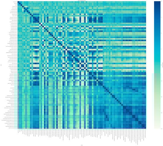 The correlation analysis shown in Figure 3 shows that almost all the variables have some internal relationship with one or more of the other variables. Moreover, the ratio of the data is about 15:1, which puts it in the acceptable range for exploratory factor analysis []. To proceed with this verification in a statistical way, Bartlett’s Test of Sphericity and the KMO test were deployed. Bartlett’s Test of Sphericity indicated a chi-square value of approximately 206,059 and a p-value of 0. This proved adequate intercorrelations between the variables. Furthermore, the overall KMO result was equal to 0.937. The closeness of this value to one indicated that the selected set of variables is good for factor analysis. To indicate the number of factors, the scree plot and the Elbow Method were used, which resulted in the fifth eigenvalue as the elbow point []. Therefore, the number of factors was set to five.