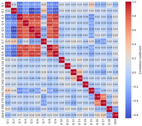Figure 1. Correlation matrix for knowledge questions (Q1 to Q19).