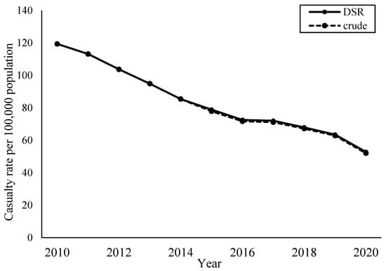 3.1. Incidence and Trends in Bicycle-Related Casualties