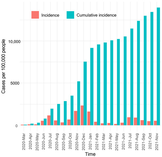 Temporal variation in COVID-19 incidence and cumulative incidence rates.