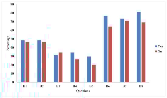 | B5. I participate in community clean-up activities that focus on preventing blockages such as clearing blockages in my area | 33.68 | 17.52 | 26.46 | 9.97 | 12.37 | 2.50 | 1.37 | |