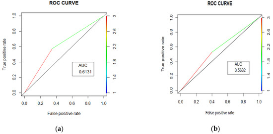 Figure 3. Area under the curves (ROC curves) for trauma (a) and surgery readmissions (b) prediction.