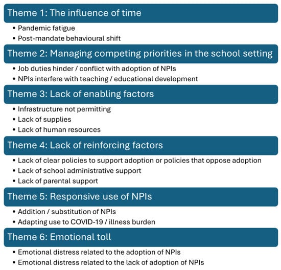 Chicago/Turabian StyleRobertson, Nicole M., Kailey Fischer, Iris Gutmanis, Veronica Zhu, CCS-2 Working Group, and Brenda L. Coleman. 2025. "Trends in the Use of Non-Pharmaceutical Interventions in Schools During the COVID-19 Pandemic, February 2021 to December 2023: A Mixed Methods Study" International Journal of Environmental Research and Public Health 22, no. 3: 394. https://doi.org/10.3390/ijerph22030394