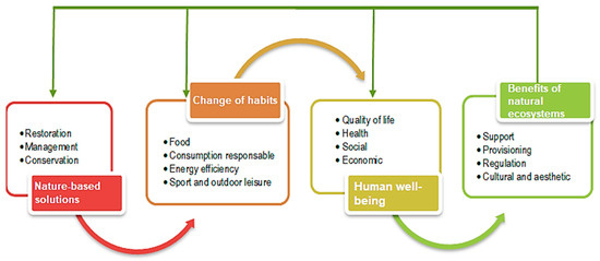 This view contributes to an understanding of the systemic and dynamic changes through which everything is interconnected. In our Western cultural cosmovision [64], our belief in our own superiority over the rest of the natural world disconnects us from nature. This approach is losing ground, and in the new view of the ecosystem, we regenerate the natural environment; we “re-naturalize” ourselves. This idea of nature is also influenced by the current concept of sustainability, as seen in the Sustainable Development Goals (SDG) [65], which seek the best options for future generations based on the present moment, in a universal appeal to bring about a fairer, more inclusive, resilient, and sustainable world.