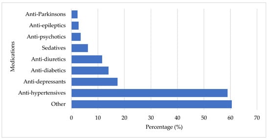 - Costa-Dias, M.J.; Oliveira, A.S.; Martins, T.; Araújo, F.; Santos, A.S.; Moreira, C.N.; José, H. Medication fall risk in old hospitalized patients: A retrospective study. Nurse Educ. Today 2014, 34, 171–176. [Google Scholar] [CrossRef]