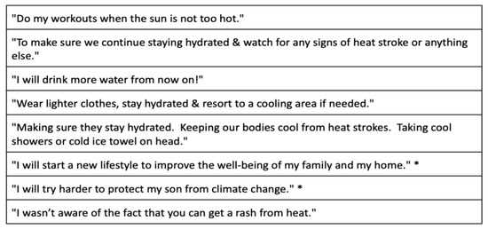 Selected participant responses to “To tell us of any new decisions you may make in your home or for your family because of the brochure or handout you were given” (* indicates translation from Spanish).