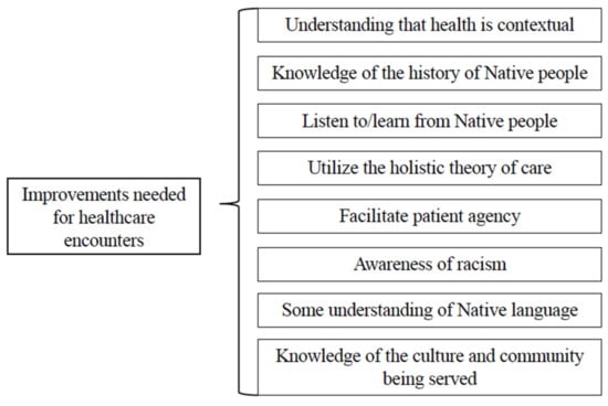 The first step in facilitating effective change is understanding the perspectives and experiences of those receiving care. This manuscript describes a qualitative study rooted in Indigenous Research Methodology [] that describes participants’ healthcare experiences and the changes they would like to see in the provision of care. A wide range of themes emerged from the analysis. This paper will provide an overview of the central themes and a synthesis of patient recommendations for healthcare improvement. The incorporation of these themes will inform the creation of an Indigenous health toolkit to guide healthcare providers in the provision of effective healthcare to Indigenous patients.