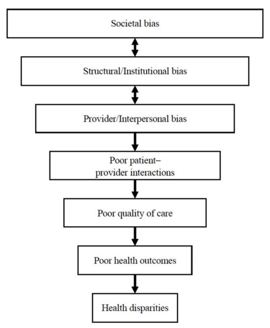 - Gopal, D.P.; Chetty, U.; O’Donnell, P.; Gajria, C.; Blackadder-Weinstein, J. Implicit bias in healthcare: Clinical practice, research and decision making. Future Healthc. J. 2021, 8, 40–48. [Google Scholar] [CrossRef]