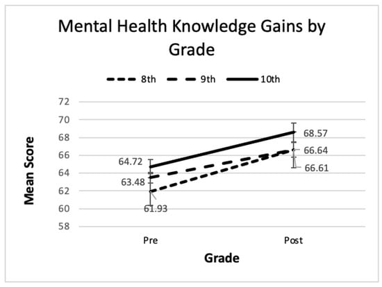 18]. However, Hypothesis 5 was partially supported. While this study proposed no differences in gains for lower or upper grade levels, the interaction term was marginally significant, technically supporting Hypothesis 5. However, a post hoc analysis suggested a significantly stronger impact of the program for 10th graders. Prior research by Campos et al., found that 9th graders scored higher than 7th graders [