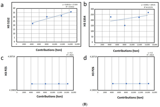 The correlation between contributions and radioisotope tracing for tritium in the different sites sampled both inside and outside the settlement was therefore evaluated. The results obtained are shown in Figure 3.