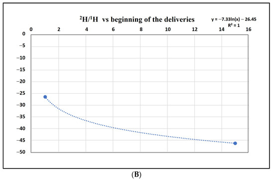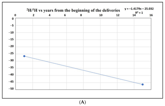 It should also be underlined that the settlement examined selects the waste delivered, with the consequent presence of a very low rate of biodegradable organic waste. The lower enrichment of deuterium in the leachate detected in the site under examination, compared to what was instead detected by the study of other authors in the landfills in Sardinia and Umbria [19], is therefore also probably an indication of lower methanogenic activity attributable to the lower presence of biodegradable waste. In fact, a strong presence of deuterium is detectable in the case of landfills with highly biodegradable contributions, as demonstrated in an analysis of a plant in Minnesota, USA [25].