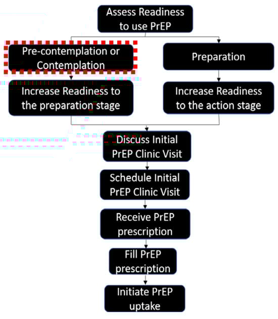 - Teitelman, A.M.; Chittamuru, D.; Koblin, B.A.; Davis, A.; Brawner, B.M.; Fiore, D.; Broomes, T.; Ortiz, G.; Lucy, D.; Tieu, H.V. Beliefs Associated with Intention to Use PrEP Among Cisgender U.S. Women at Elevated HIV Risk. Arch. Sex. Behav. 2020, 49, 2213–2221. [Google Scholar]