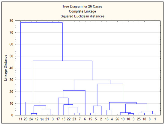 The cluster analysis technique employed in this investigation is a multivariate statistical methodology extensively utilized for the interpretation of complex datasets and the identification of pollution sources. Cluster analysis represents a statistical approach that categorizes heterogeneous and intricate data into several groups characterized by similar attributes, assisting in determining common sources of pollution [50].
