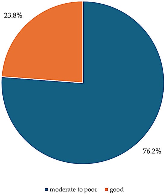 The information on the adherence to hydroxyurea treatment among study participants is shown in Figure 1. A significant percentage of the participants (23.8%) had good adherence to hydroxyurea treatment, and 76.2% of the participants had moderate-to-poor adherence to hydroxyurea treatment (Figure 1).