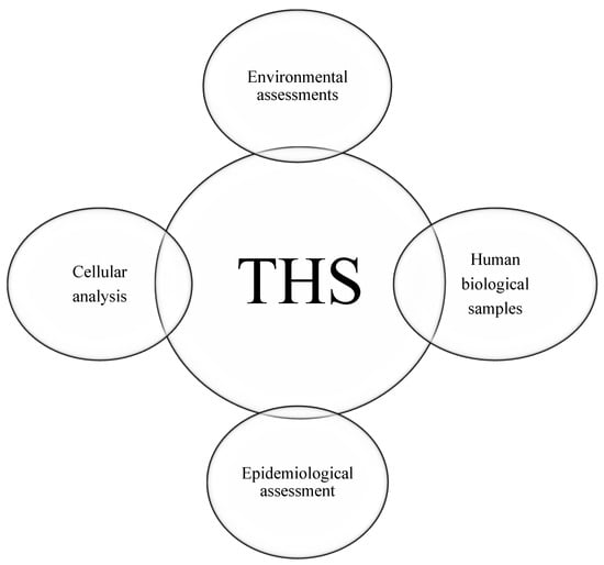 After analysing the studies, four categories of assessment methods were identified: (1) human biological samples, (2) cellular analysis, (3) environmental assessments, and (4) epidemiological analysis (Figure 3).