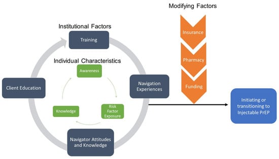 Modifying factors refer to external elements outside the navigators’ control that affect the outcomes of injectable PrEP services. Health insurance policies, pharmacy policies and protocols, and the costs associated with injectable PrEP are critical barriers affecting the transition to injectable PrEP.