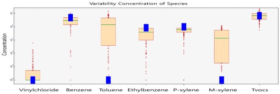 - Civan, M.Y.; Elbir, T.; Seyfioglu, R.; Kuntasal, Ö.O.; Bayram, A.; Doğan, G.; Yurdakul, S.; Andiç, Ö.; Müezzinoğlu, A.; Sofuoglu, S.C.; et al. Spatial and temporal variations in atmospheric VOCs, NO2, SO2, and O3 concentrations at a heavily industrialized region in Western Turkey, and assessment of the carcinogenic risk levels of benzene. Atmos. Environ. 2015, 103, 102–113. [Google Scholar] [CrossRef]