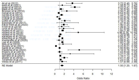 Forest plot of the unemployment and PTSD relationship [,,,,,,,,,,,,,,,,,,,,,,,,,,,,,,,,].