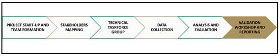 The multimethod approach in our study included a comprehensive desk review for any existing policies, strategies, and legislations related to the One Health approach to zoonoses, AMS, and climate change in Jordan and key informant interviews (KIIs) involving discussions with relevant key stakeholders and subject matter experts (SMEs) in the country. To facilitate the data collection process, an official circular indicating data sharing and the facilitation of appointments with focal points was disseminated amongst the stakeholders. The combination of the desk review and key informant interviews allowed for a more nuanced understanding of the gaps, strengths, and challenges in Jordan’s approach to One Health, AMS, and climate change adaptation. By triangulating the findings from both methods, the study was able to cross-validate its results and ensure greater reliability and accuracy in its conclusions. See Figure 1, which describes the project phases.