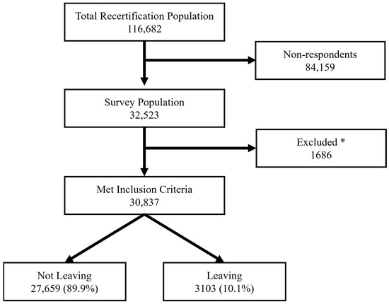 Flow chart of included population. * Individuals were excluded due to military roles or recertification at the emergency medical responder (EMR) level.