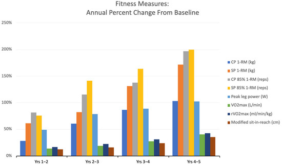 Annual average percentage changes in fitness measurements from baseline.