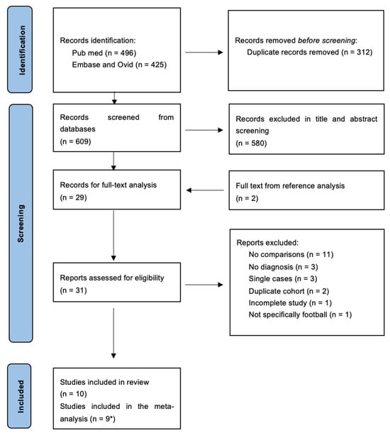 Studies were included for full-text analysis if the studies were full text, cohort studies, and had a population of football players.