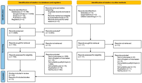 This research is part of a broader review aimed at exploring HIV stigma in Indonesia, with the goal of providing a comprehensive overview of the manifestations and markings of HIV stigma in the country. This study adheres to the PRISMA for Scoping Reviews (PRISMA-ScR) guidelines [] and is guided by the scoping review framework developed by Arksey and O’Malley []. The PRISMA-ScR checklist is available in the Supplementary Materials. While a review protocol was developed, it was not registered.