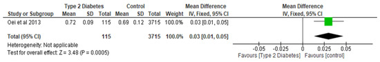 Wang et al. [24] noted that both men and women with diabetes were much older (p < 0.001), and their BMI was higher than that of women who did not have diabetes. Similarly, Oei et al. [16] showed that those with diabetes were older and had a higher BMI and higher serum insulin and creatinine levels. Oei et al. [16] also noted that these subjects used diuretics more regularly than the non-diabetes group.