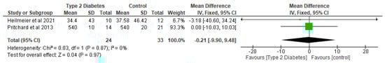 In the present review, BMI was significantly (p < 0.05) increased in patients with T2D compared with controls. People with a high BMI are often associated with higher body fat content, which could be converted into fat-related hormones [34]. There is evidence body fatness may have an effect on the accuracy of dual-energy X-ray absorptiometry (DXA)-based BMD measurements in obese patients with diabetes [12].