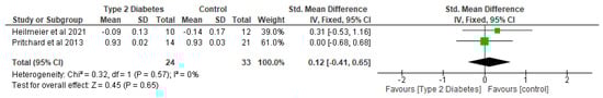 The effect of type 2 diabetes on trabecular number (standardised mean difference) [26,29].