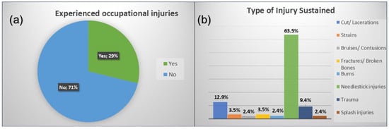 (a,b). Respondents’ injury experience and types of occupational injuries among respondents.
