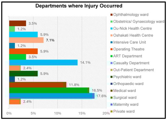 4.5. Distribution of Injuries Among Hospital Departments