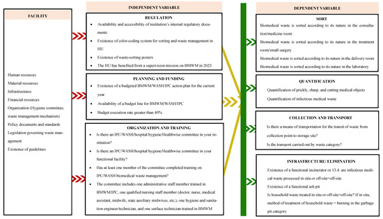 The dependent variable was the quality of biomedical waste management (effective, safe, and sustainable) assessed from the components presented in Table 3.