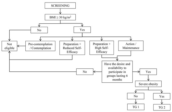 Steps for participant eligibility. Note: BMI = Body Mass Index. TG = Therapeutic Group.