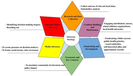 - Cullerton, K.; Donnet, T.; Lee, A.; Gallegos, D. Effective advocacy strategies for influencing government nutrition policy: A conceptual model. Int. J. Behav. Nutr. Phys. Act. 2018, 15, 83. [Google Scholar] [CrossRef]