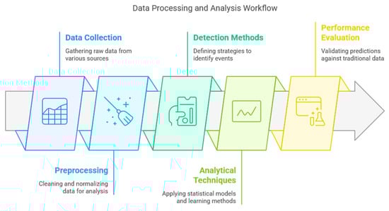 The methodological workflow across the reviewed studies, detailed in Table 3, follows a consistent pattern of data collection, preprocessing, signal detection, and analysis, as outlined in Figure 4. In the preprocessing stage, a clear distinction emerges based on the data source. Studies using time series data from search engines frequently apply smoothing techniques like moving averages to reduce noise. In contrast, those analyzing unstructured social media text employ more complex natural language processing techniques, including stop word removal, stemming, and lemmatization to extract meaningful signals.