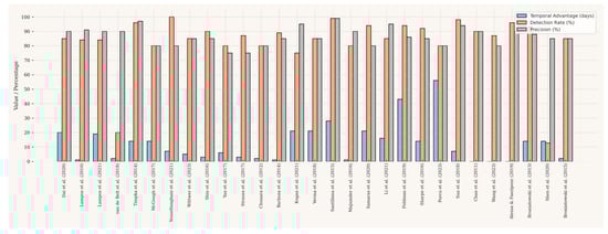 Geographical diversity is also a key aspect (see Figure 2). There are studies with a local scope, such as Wittwer et al. [] in Brazilian cities or Broniatowski et al. [] in a Baltimore hospital. Other works have national approaches in countries like China, the United Kingdom, the United States, Italy, and India. Additionally, international investigations spanning multiple countries, such as those by Yan et al. [] and Feldman et al. [], highlight the scalability of these methods. This geographic breadth allows for the adaptation of methodologies to specific contexts, considering factors like internet connectivity and population density.