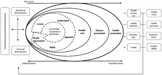 - Sørensen, K.; Van Den Broucke, S.; Fullam, J.; Doyle, G.; Pelikan, J.; Slonska, Z.; Brand, H.; (HLS-EU) Consortium Health Literacy Project European. Health Literacy and Public Health: A Systematic Review and Integration of Definitions and Models. BMC Public Health 2012, 12, 80. [Google Scholar] [CrossRef] [PubMed]