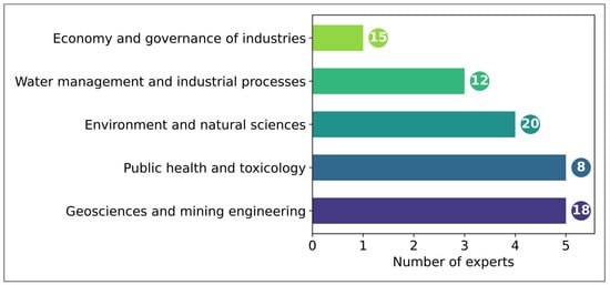A targeted sample was selected to ensure multidisciplinary evaluation. It included experts in artisanal and small-scale gold mining, public health, toxicology, ecotoxicology, environmental engineering, and technical officers from the mining sector (Figure 4). This diversity of expertise ensured a comprehensive review covering technical, health, and ecological dimensions of the model [].
