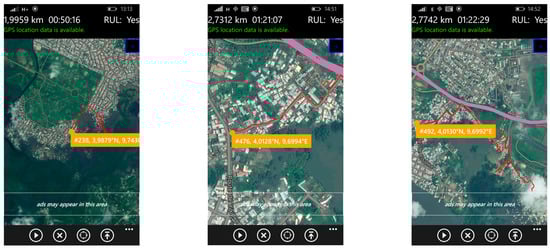 The questionnaire surveys were conducted with 260 households in the Boko health district, selected through systematic random sampling. A live GPS tracking system on mobile phones was used to navigate along streets and footpaths serving residential areas, as illustrated in Figure 4. During the pre-survey phase, satellite imagery and non-participant observations were used alongside transect walks to develop an understanding of the area’s spatial characteristics. This preliminary work enabled the targeted health district to be divided into four zones and twelve neighborhoods. These spatial subdivisions were then used to guide the distribution of questionnaires, streamline fieldwork operations, and support spatial monitoring throughout the data collection process.