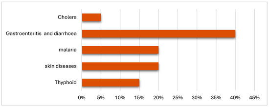 When asked about the most common diseases or symptoms affecting their households, respondents identified several water-borne and vector-borne diseases (Figure 10). This result emphasizes the impact of environmental factors such as water pollution, poor hygiene, and inadequate waste management.